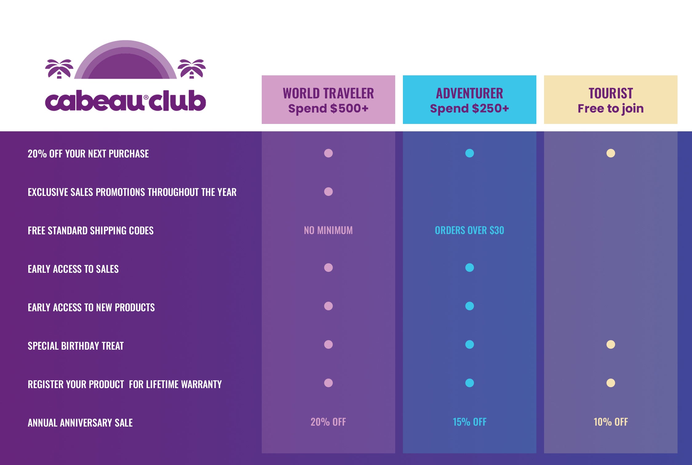 Loyal Cabeau Club members will receive exclusive deals throughout the year.